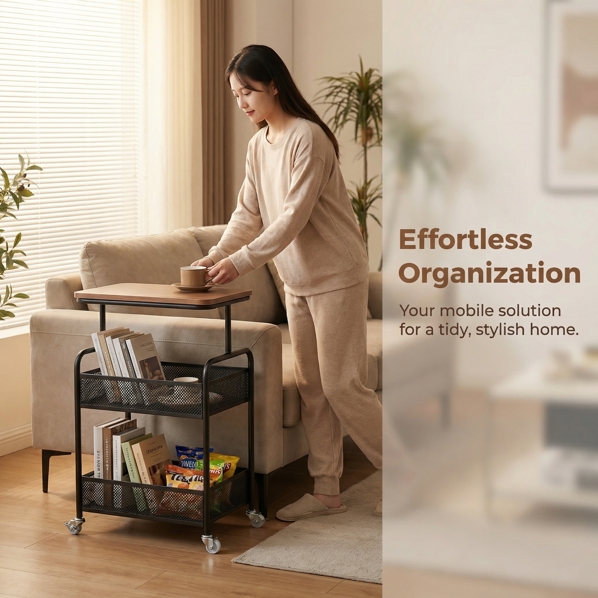 3 Tier Metal Rolling Utility Cart Organizer with Table Top, Stable and Sturdy Rolling Storage Carts with 2 Lockable Wheels for Kitchen,Bathroom,Snacks,Coffee,Craft,Makeup,Baby Essentials